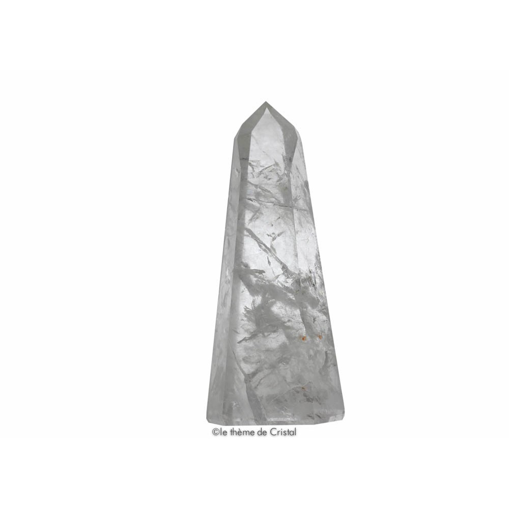 Longtemps considéré comme pierre de protection, le Quartz élève le niveau vibratoire de tout ce qui l’entoure. Il facilite la transformation et les prises de conscience. Il peut être considéré comme la pierre universelle d’accompagnement permettant d’équilibrer les champs énergétiques, de les amplifier et de les stabiliser. De grande taille, il peut être très utile pour écarter toutes attaques ou pollutions psychiques.